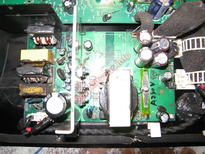 - відновлення плати живлення, включаючи перевірку пайки та контактів, заміну згорілих елементів та регулювання напруги;