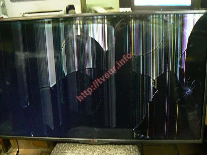 До сервісного центру надійшов телевізор LG 42LA620S із критичним пошкодженням матриці. Пристрій було доставлено з міста Дніпро, оскільки, зі слів клієнта, у місцевих майстернях не змогли виконати такий складний вид робіт, як заміна РК екрана телевізора. Телевізор експлуатувався з 2013 року та до моменту поломки повністю задовольняв власника. Причиною несправності стало механічне пошкодження: під час гри діти випадково влучили іграшкою в екран. У результаті удару відбулося порушення цілісності рідкокристалічної панелі, що призвело до миттєвої втрати зображення. Після цього на дисплеї з’явилися характерні дефекти - плями, тріщини та спотворення, які свідчать про фізичне руйнування шарів матриці. Клієнт наполягав на ремонті, оскільки модель повністю відповідала його вимогам та залишалася актуальною за своїми характеристиками.