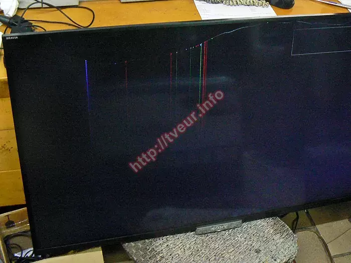 У телевізорі Sony KDL42W653A механічно пошкоджений дисплейний модуль - матриця через необережність розбита. Користувач звернувся до нас з проханням виконати діагностику пристрою, після якої визначити, чи є технічна можливість та доцільність для такої послуги, як заміна матриці телевізорів. Такий підхід зумовлений попереднім негативним досвідом, адже, як розповів клієнт раніше телевізор уже перебував в іншому сервісному центрі, де намагалися встановити нову матрицю, однак екран, який підібрали виявився несумісним з цією моделлю. Крім того, під час невдалої адаптації матриці майстрами виконувалися втручання в електронну частину телевізора, а саме, окремі компоненти були перепаяні, що викликає додаткові сумніви щодо подальшої працездатності пристрою.