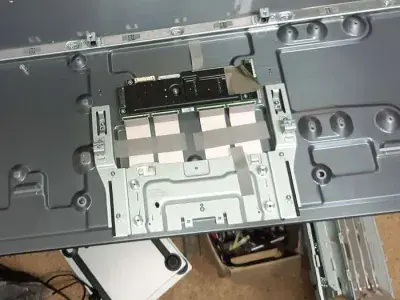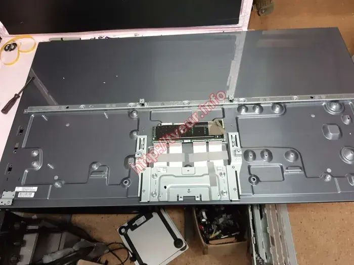 Для проведення повноцінної діагностики та подальшого відновлення роботи OLED телевізора спочатку знадобилося його розібрати. Виконання таких робіт потребує максимальної обережності, адже пристрій оснащений ультратонкою OLED-матрицею, яка є дуже чутливою до механічних навантажень. Перед початком телевізор відключили від електромережі та розмістили екраном вниз на м’якій рівній поверхні, щоб уникнути будь-яких пошкоджень. Далі по периметру задньої панелі були відкручені гвинти, які мають різну довжину, тому їх демонтаж виконувався уважно та поетапно. Після цього зняли нижню декоративну планку, яка фіксує частину корпусу та приховує додаткові кріплення. Варто зазначити, що задня кришка кріпиться не лише гвинтами, а й спеціальними засувками, тому для її демонтажу використовувався пластиковий інструмент, щоб не пошкодити корпус. Розбирання починалося з нижньої частини з поступовим від’єднанням усіх фіксаторів. Проведена діагностика показала, що несправність має складний характер, оскільки вийшла з ладу материнська плата (Main Board). У подібних випадках потрібен комплексний та досить витратний ремонт РК телевізорів LG із подальшою прошивкою пристрою. Про всі деталі та вартість робіт було повідомлено замовнику, який погодився на проведення ремонту.
