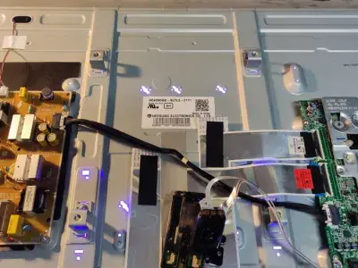 На початковому етапі ремонту майстер виконав демонтаж пошкоджених радіоелементів, зокрема несправних випрямних діодів, електролітичних конденсаторів та силового транзистора, який відповідає за перетворення вхідної напруги в імпульсне живлення для інших вузлів. Також було замінено мікросхему контролера живлення, що забезпечує запуск пристрою та стабілізацію вихідних параметрів. Усі нові компоненти підбиралися з урахуванням оригінальних технічних характеристик, а саме, за показниками струму, напруги, температурної стійкості та форм-фактору. Відремонтований блок живлення спочатку протестували окремо, використовуючи лабораторне навантаження, а потім встановили назад у телевізор для повторної перевірки вже в робочій системі. Після виконаних робіт пристрій успішно запустився, відбулося ввімкнення, з’явилося зображення, а система почала функціонувати у штатному режимі. Загалом основні функції телевізора були повністю відновлені, він стабільно працює, реагує на команди користувача та відображає зображення по всій площі екрана. Цей непростий, але ефективний ремонт став можливим завдяки своєчасно проведеній терміновій діагностиці телевізора.