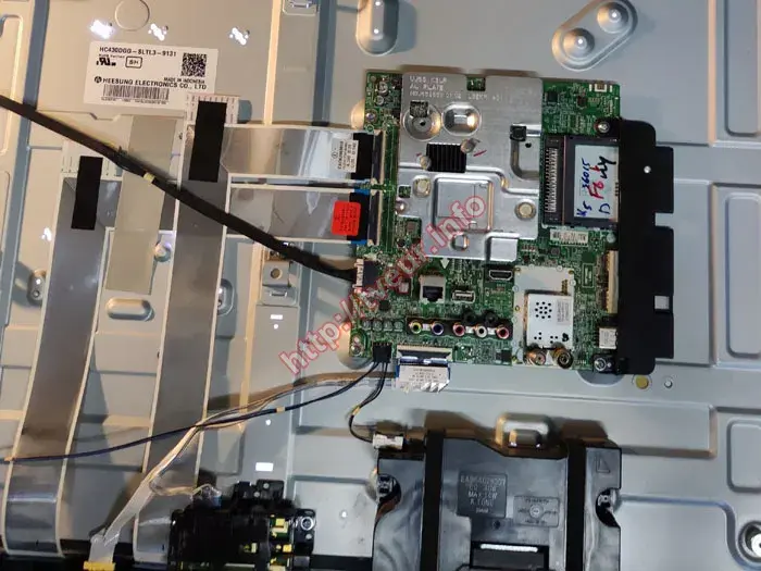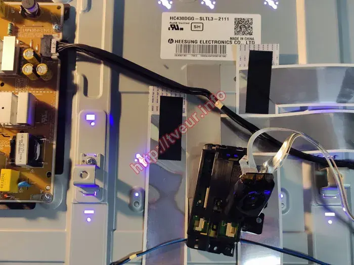Під час перевірки в сервісному центрі телевізор так і не вдалося увімкнути, індикатор чергового режиму не світився та не реагував. Для встановлення точної причини поломки та визначення подальших ремонтних робіт знадобилася термінова діагностика телевізора. Щоб отримати доступ до внутрішніх компонентів, майстер обережно зняв задню панель, яка кріпиться по периметру гвинтами із захисною фіксацією. Як виявилося у цій моделі застосовуються такі модулі: материнська плата Main board LJ7 CHASSIS, тюнер EBL61841001 TDJN-G501D, підсвітка HC430DGG-SLTL3-9131, блок живлення PCB:EAX67209001(1.5), а також шлейфи EAD63986803, EAD63969910 та EAD63969911. У ході діагностики послідовно перевірено всі ключові вузли: основну плату, інверторну частину, систему живлення та з’єднувальні кола. Результати вимірювань показали відсутність стабілізованих напруг на виходах блока живлення, що свідчить про його несправність. Додатково виявлено кілька пробитих діодів, здуті електролітичні конденсатори та пошкоджений силовий транзистор, який відповідає за запуск та перетворення вхідної напруги. Попри виявлені дефекти встановлено, що блок живлення підлягає відновленню без повної заміни. Ремонт можливий на компонентному рівні із заміною пошкоджених елементів, що дозволяє зберегти оригінальні вузли пристрою, зменшити витрати та не порушити заводську архітектуру телевізора.