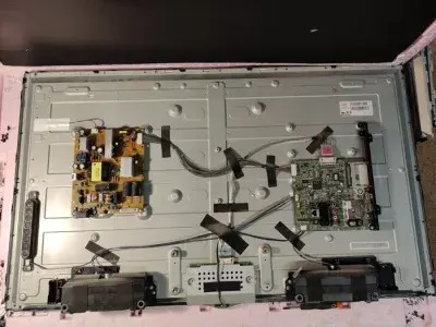 Телевізор у доброму зовнішньому стані, проте увімкнути його не вдалося, він не реагував та не подавав жодних ознак роботи. Щоб провести діагностику та подальший ремонт телевізора в Києві було виконано повне його розбирання. Конструкція моделі виявилася зручною: задня кришка кріпиться гвинтами по периметру, які інженер без труднощів відкрутив, отримавши доступ до внутрішніх компонентів. Усередині було визначено основні вузли, а саме, материнську плату (Main Board) NC4_L_TU245, тюнер EBL61240503, блок живлення E247691 із трансформатором 13S-LPM04 B та матрицю LC420DUE(SF)(RJ). Детальніша перевірка показала несправність двох ключових модулів - блоку живлення та основної плати, на яких виявлено конденсат. Це підтвердило попередній висновок про необхідність ремонту. Завдяки досвіду спеціалістів, використанню сучасного обладнання та наявності потрібних комплектуючих, повна заміна модулів не знадобиться. Ремонт виконуватиметься на компонентному рівні, що дозволить зменшити витрати та повністю відновити працездатність телевізора. Після узгодження з клієнтом усіх деталей майбутніх робіт було отримано дозвіл на проведення такого ремонту.