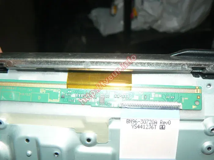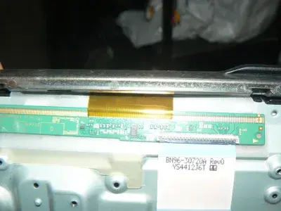 Попри тривалий термін експлуатації, зовнішній стан телевізора залишився досить хорошим, корпус без значних пошкоджень, слідів втручання або неакуратного використання виявлено не було. Після того як пристрій розібрали, вдалося визначити його основні комплектуючі: блок живлення BN44-00703A, материнську плату BN41-02156A, матрицю CY-GH040BGLV2V, а також шлейфи BN96-31530Y і BN96-3072. У процесі детальної перевірки було проведено поглиблену діагностику, яка дозволила точно встановити причину несправності. З’ясувалося, що проблема безпосередньо пов’язана з виходом з ладу матриці, що і спричинило відсутність зображення. Крім того, діагностика РК телевізора показала наявність додаткової несправності, а саме, вийшла з ладу плата T-con BN41-02111A. Цей модуль відповідає за обробку та передачу відеосигналу на матрицю, тому його некоректна робота також впливає на відображення зображення. На жаль, у цьому випадку відновлення плати на компонентному рівні виявилося неможливим, тому потрібна була її повна заміна, що вплине на остаточну вартість ремонту, з якою замовник повністю погодився.