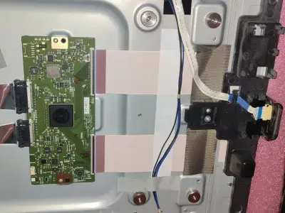 Після увімкнення телевізора в сервісному центрі одразу стало зрозуміло, що несправність є серйозною: зображення на екрані повністю відсутнє, а сам він має темно-синій відтінок. Такий симптом зазвичай свідчить про порушення передачі сигналу або проблеми з внутрішніми платами пристрою. Для визначення точної причини виконано повне розбирання телевізора. У процесі огляду встановлено, що в цій моделі використовуються такі основні компоненти: матриця LC650EQF(DJ)(F1), тюнер EBL61741501, плата підсвітки LC650EQF-DJ51-TVI, блок живлення E247691 з трансформаторами EAP62587202, плата T-Con E88441 94V-0, а також комплект шлейфів EAD63767502, EAD63787802 та EAD63787902. Після проведення комплексної діагностики стало очевидно, що майбутній ремонт телевізора належить до категорії складних. Основна проблема виявилася у центральній платі, а також у платі T-Con, які відповідають за обробку та передачу відеосигналу. Зокрема, було зафіксовано вихід з ладу кіл LVDS, які забезпечують передачу даних від основної плати до матриці. Порушення роботи цих кіл призводить до повної відсутності зображення, навіть за умови справності інших компонентів телевізора. У подібних випадках ремонт потребує високої точності, професійного обладнання та досвіду, адже необхідно не лише виявити пошкоджені ділянки, а й правильно відновити їх роботу або виконати заміну відповідних елементів.