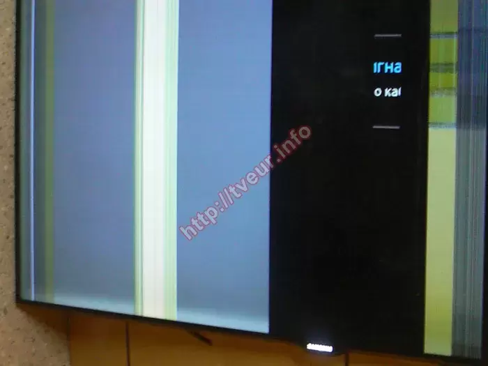 З міста Луцьк до нашого сервісного центру надійшов телевізор Samsung UE55ES8000, у якого досить складна проблема - на екрані зверху по зображенню багато кольорових вертикальних, досить широких смуг. Мало того, горизонтальні смуги також, хо не виразно, але проглядаються. Такі дефекти завадять нормальному перегляду улюблених серіалів, новин тощо. З цієї причини необхідним буде ремонт матриці телевізора Самсунг, якщо ці припущення підтвердить діагностика. Телефоном замовник повідомив, що телевізор використовується з 2013 року, однак з ладу вийшов вперше. Одразу він намагався розв'язати проблему на місці, для чого звертався у кілька майстерень, однак ні в одній з них не взялися за ремонт, посилаючись на те, що потрібна буде заміна деталей, яких немає в наявності. Також користувач не мав припущень з приводу того, що стало причиною виникнення несправності, оскільки телевізор використовується на стіні, його лише інколи протирають сухою ганчіркою від пилу.