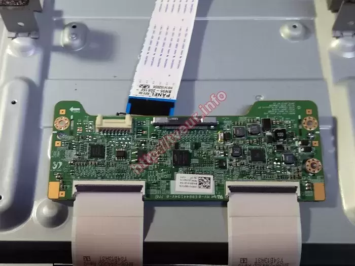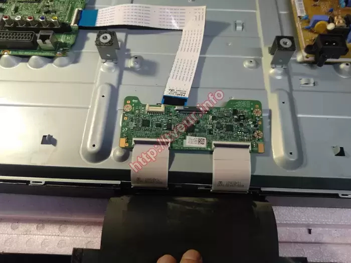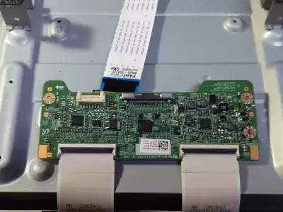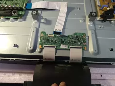 Після увімкнення телевізора в сервісі з ремонту телевізорів стало очевидно, що проблема проявляється дуже серйозно: зображення помітно тремтить, подвоюється та в цілому виглядає нестабільним. У такому стані дивитися будь-який контент неможливо, тому було вирішено проводити поглиблену діагностику, щоб визначити точну причину дефекту та оцінити можливість подальшого ремонту. Для детальної перевірки внутрішніх вузлів телевізор необхідно було розібрати. Це не викликало складнощів - усі гвинти по периметру задньої кришки були викручені, після чого корпус легко відкрився. Всередині цієї моделі встановлені такі модулі, як шлейф матриці BN96-24430D Rev0, плата T-CON MV-0E8844194V-0, а також шлейф BN96-30816F. Усі ці компоненти пройшли послідовне тестування. Телемайстер перевірив напругу живлення панелі, цілісність запобіжників на платі T-Con, а також робочі та опорні напруги стовпцевих та дрібних драйверів. Проведені вимірювання дозволили точно встановити, що несправність виникла саме у платі T-Con, а додатково вийшла з ладу й плата матриці. Попри це, обидва модулі підлягають відновленню, тому їх повна заміна не потрібна. Після завершення діагностики клієнта ознайомили з результатами перевірки та попередньою вартістю ремонту телевізора. Отримавши згоду, майстер приступив до відновлювальних робіт.