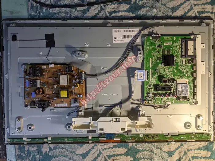 У майстерні телевізор не реагував на спроби увімкнення, індикатор залишався неактивним. Щоб точно встановити причину несправності та визначити подальшу тактику ремонту, була виконана поглиблена діагностика РК телевізора. Для отримання доступу до внутрішніх вузлів майстер обережно демонтував задню кришку корпусу, яка фіксується по периметру гвинтами. Після розбирання встановлено, що конструкція моделі включає такі основні компоненти, як плата T-Con CPWBX5409TP, матриця NC320DXN, материнська плата EAX65610905 (1.0), тюнер EBL61400501, а також блок живлення LGP32-14PL1 EAX653914. Під час діагностики виконано поетапну перевірку всіх ключових вузлів телевізора. Проведені вимірювання показали відсутність стабілізованих вихідних напруг на блоці живлення, що однозначно свідчило про його несправність. Додатково виявлено кілька пробитих діодів, здуті електролітичні конденсатори, пошкоджений силовий транзистор. Попри наявність кількох дефектних компонентів, фахівці дійшли висновку, що повна заміна модуля живлення не потрібна, оскільки підлягає ремонту на компонентному рівні шляхом заміни несправних деталей. Завдяки такому підходу зберігається оригінальна електроніка, а також знижується ціна ремонту, оскільки не порушується заводська архітектура телевізора.