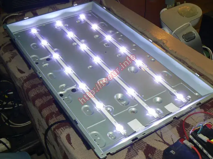 Під час проведення ремонту майстер поетапно розібрав телевізор: відкрутив усі кріпильні гвинти та акуратно демонтував задню кришку, щоб отримати доступ до внутрішніх вузлів. У ході огляду встановлено, що в цій моделі використовується основна плата Main board NC4_M_TU24, укомплектована ТВ-тюнером EBL61240503. Подальша діагностика підтвердила, що джерело несправності знаходиться саме в системі підсвітки матриці. Вона реалізована у вигляді трьох світлодіодних лінійок (стрингів), кожна з яких містить по сім LED елементів. На першому етапі було ретельно перевірено кожен світлодіод, що дозволило точно визначити проблемні ділянки, а саме, що три елементи виявилися несправними та не працювали. Крім цього, зафіксовано пошкодження в колах живлення підсвітки, а також у допоміжних елементах, що забезпечують її стабільну роботу. Саме тому ремонт LED підсвітки в телевізорах LG у цьому випадку вимагав комплексного підходу - не лише заміни несправних світлодіодів, а й відновлення всіх пов’язаних електричних вузлів, що впливають на роботу підсвітки.