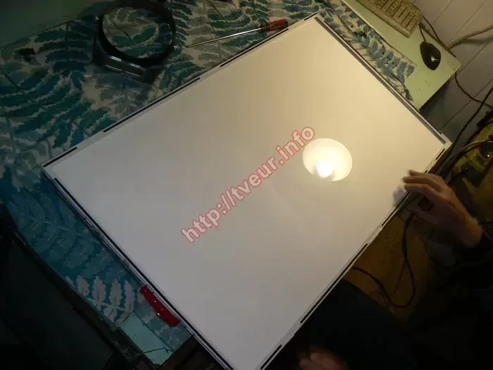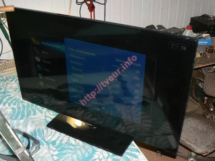 Телевізор Samsung UE40ES5530 був прийнятий у сервісний центр із характерною несправністю, а саме, на екрані практично відсутнє зображення, він має рівномірно темний відтінок, без чітко помітної картинки. Зазвичай, така поведінка екрана свідчить про проблеми саме з системою підсвітки, тому виникла обгрунтована підозра, що знадобиться ремонт підсвітки ЛЕД телевізора, що має бути підтверджено діагностикою. У цій моделі використовується торцева LED підсвітка, особливістю якої є розташування світлодіодів уздовж країв матриці. Світловий потік від діодів поширюється по всій площині екрана за допомогою спеціальної світловідбивної та розсіювальної системи. Така технологія дозволяє зробити корпус телевізора тоншим та елегантнішим, проте водночас підвищує вимоги до якості та рівномірності роботи світлодіодних елементів. Зі слів користувача стало відомо, що телевізор експлуатується з 2012 року практично щоденно, часто по декілька годин поспіль. Такий режим роботи значно прискорює природний знос світлодіодів, адже з часом їх яскравість знижується, а окремі елементи можуть повністю виходити з ладу. У результаті підсвітка перестає забезпечувати достатній рівень освітлення матриці, і зображення стає ледь помітним або зовсім зникає.