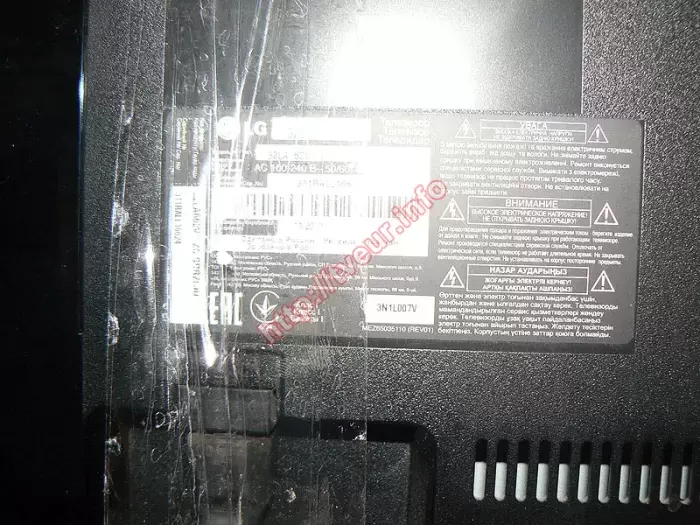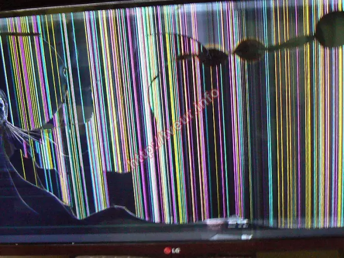 В 32-дюймовом LED телевизоре LG 32LA662V, который собран в 2012 году и наделен самыми прогрессивными технологиями и функциями, такими, как 3D, Smart TV и Wi-Fi, после падения с тумбочки очень сильно поврежден экран, на котором наряду с трещинами появились другие механические повреждения. Мы можем заменить экран телевизора, поэтому приняли в работу данную модель, которая прислана пользователем из города Курахове. Телевизор упакован в самодельную коробку из картона. При осмотре стало понятно, что падение телевизора полностью вывело его из строя. С правой стороны он обмотан скотчем (хорошо видно на фото № 3). Матрица также вся в разного рода дефектах. На ней очень много трещин, причем как длинных, так и коротких, которые в основном сосредоточены возле боковой левой рамки. Здесь образовалась сетка из мелких многочисленных трещин. Длинная трещина видна вдоль нижней рамки, она заканчивается в нижнем правом углу. Из правого верхнего угла выходит еще одна глубокая трещина черного цвета, на которой образовались круглые пятна (видно на фото № 1 и 2). Многочисленные вертикальные цветные полосы покрыли практически всю панель. Вдоль нижней рамки просматривается полоса серого цвета, над которой несколько прозрачных линий. Чтобы заменить экран телевизора, который разбит, нам пришлось заказать и купить идентичную матрицу. Все работы по замене выполнялись опытными телемастерами, использовалась специальная оснастка. Клиенту выдана гарантия.