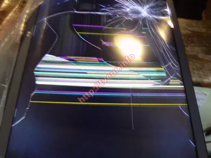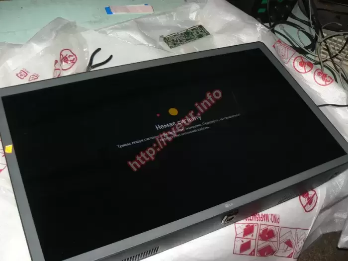 В бюджетном «умном» телевизоре LG 32LK6100PLB, 2018 года выпуска (Польша), который наделен функцией Smart TV разбита 32-дюймовая LCD матрица с LED подсветкой. В данном случае цена замены матрицы телевизора LG будет значительно дешевле нового устройства. Изучив все эти нюансы заказчик решил выполнять ремонт. На приемке он рассказал, что после приобретения телевизор был сразу повешен на стене в гостиной. Возможно не выдержало крепление, другого объяснения он не находит, но телевизор упал со стены. Это случилось, когда взрослые были на работе, а дети в школе. Они первые заметили, что телевизор упал и позвонили, чтобы об этом сообщить. Когда устройство подняли, то увидели, что матрица настолько сильно испорчена, что на ней практически нет не поврежденных участков. После осмотра телевизора телемастер сделал заключение, что в левом верхнем углу образовалась сетка из мельчайших трещин, которые светятся. От этого места во все стороны расползлись длинные и короткие трещины, которых очень много. Правее логотипа LG широкий столбец, состоящий из многочисленных вертикальных полос разной длины, ширины и цвета. Левее между трещинами также видны цветные линии (хорошо видно на снимках №1 и 2). Цена замены матрицы телевизора LG, которую пришлось заранее заказывать и покупать, оказалась в половину стоимости нового идентичного телевизора, поэтому данный ремонт для заказчика достаточно выгодный в финансовом плане. Нам удалось аккуратно демонтировать разбитую панель, а на ее место установить ту, которую купили. После результативной замены сделаны настройки. Клиенту дана гарантия, а также рекоменовано более надежно закрепить телевизор на стене.