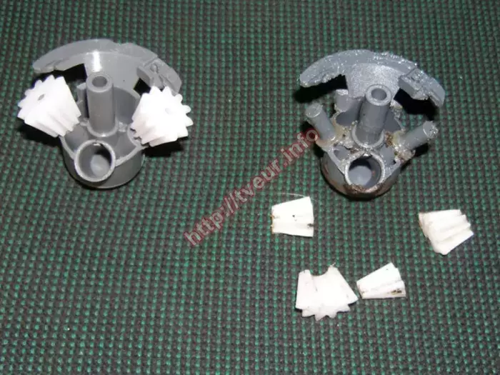Как показывает практика, такие кухонные устройства, как электромясорубки, выходят из строя достаточно часто, поэтому мастерам нашего сервисного центра приходится выполнять ремонт электромясорубок с любой сложностью поломки. В данном случае из строя вышла модель Bosch FD8709 с мощностью 1550 Вт, у которой не крутится шнек. По этой причине заказчик обратился к нам за помощью. Как оказалось, ее состояние удовлетворительное, пластмассовый корпус очень грязный, особенно возле кнопки включения. Кроме того, сломаны шестерни редуктора (хорошо видно на фото), они развалились на четыре части. Это стало понятно после того, как устройство было полностью разобрано. С такой неисправностью восстановить редуктор не возможно, поэтому требуется его замена. Об том был поставлен в известность пользователь. В результате пришлось выполнять замену нового редуктора в сборе, в противном случае ремонт электромясорубок был бы не возможным. Теперь эта кухонная бытовая техника работает исправно, шнек крутит хорошо. В дальнейшем устройство нельзя перегружать, в обязательном порядке следить за заточкой ножей, ножи сильно не зажимать, периодически за электромясорубкой ухаживать. Выполняя все простые правила по эксплуатации, можно избежать ремонта.