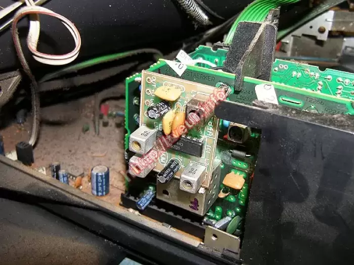 Попал в ремонт телевизоров с диагнозом: черно-белое изображение, нет звука, подобрать пульт. Неисправным был модуль радиоканала, произведена переделка звука (установка конвертора BG-DK), подбор пульта дистанционного управления.