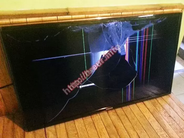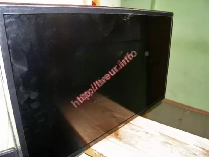 Неаккуратное поведение с устройством привело к тому, что на дисплее появились сильные трещины по всему экрану. В данном случае понадобилась замена матрицы телевизора, дело не из дешевых, но существенно выгодней чем покупка нового LED ТВ.