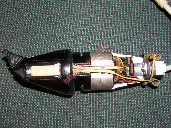 Заказчику требуется ремонт бытовой техники, а именно, профессиональной машинки для стрижки Komet DDR HS4, в которой отходит сетевой шнур. Со слов пользователя, устройство периодически отключается. Кроме того, до нас ремонт уже проводился, в результате, не работающую кнопку включения запаяли напрямую. Данная модель (производства Германии) уже достаточно устаревшая, в комплекте к ней идут два сьемных ножа 0,1 и 0,3 мм. После разборки машинки для стрижки, что необходимо для выполнения диагностики и последующего ремонта выяснили, что внутри она в удовлетворительном состоянии, она грязная и в волосах (отлично видно на фото №3). В ходе диагностики установлено, что проблема возникла в работе двигателя, также не работает кнопка включения. Исходя из этого, была отреставрирована кнопки включения, произведена чистка. В замене двигателя не было потребности, поэтому выполнена его смазка, что значительно удешевило конечную стоимость ремонта.