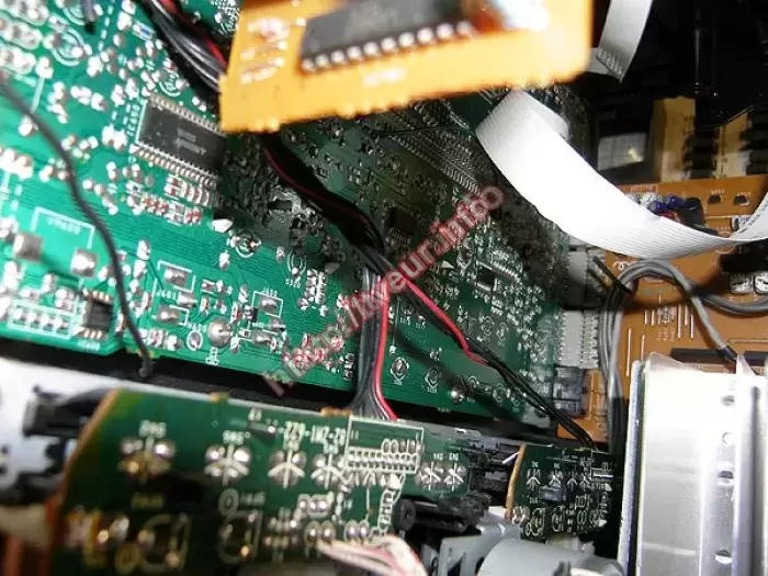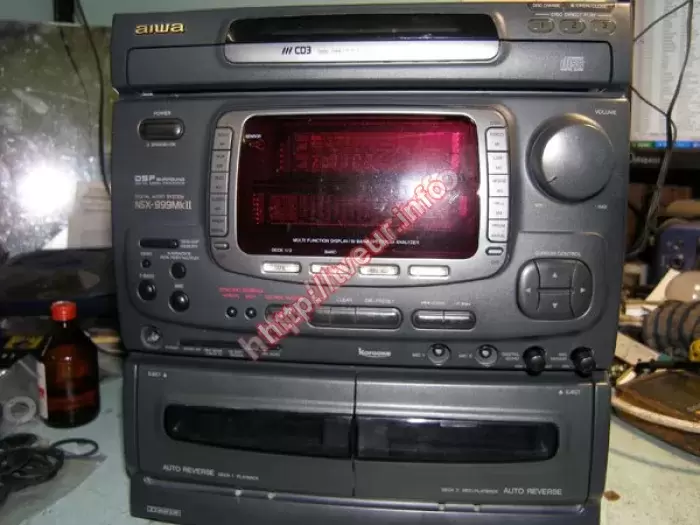 Также неправильно работают кнопки управления на передней панели, тускло светится дисплей. Ремонт музыкальных центров в юстировке привода, обоих ЛПМ и мех. карусели. Заменены SLED-мотор, шпиндель-мотор, С 10,0*50В, микрики, пасики.