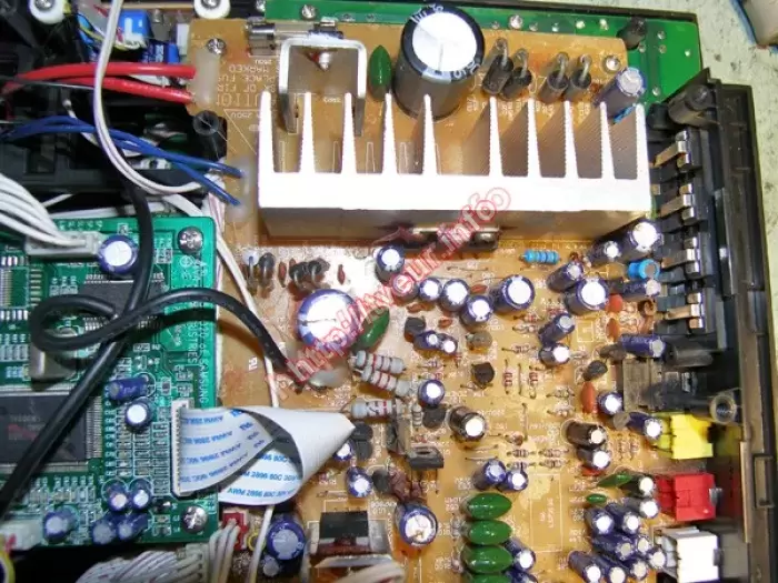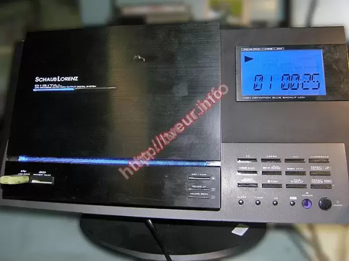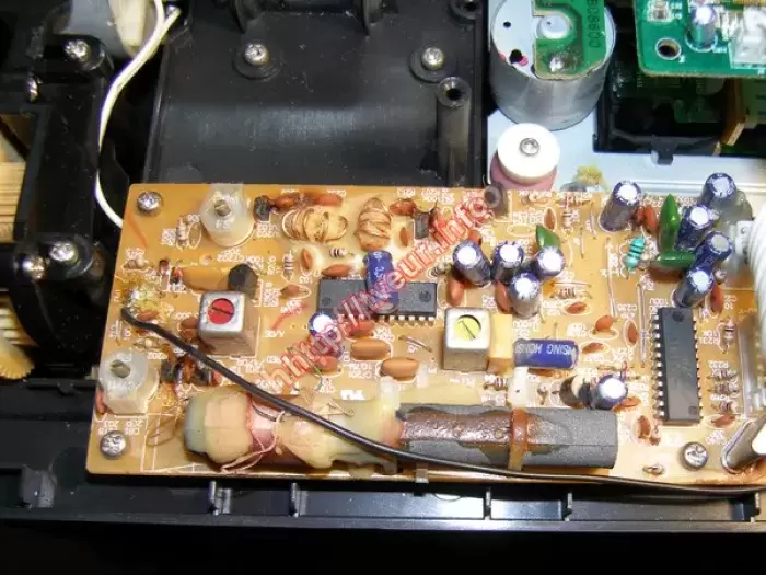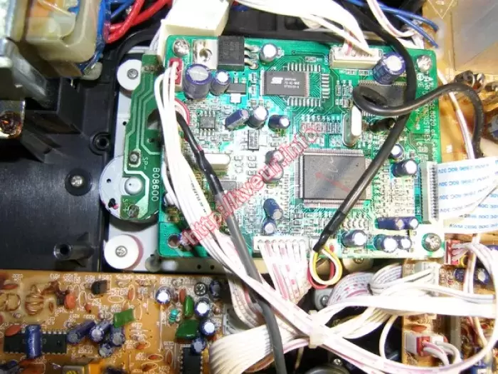 Попал в сервисный центр с диагнозом "не работает". Ремонт музыкальных центров был произведен в модуле питания, поменяны конденсаторы (С 1000 пФ*100В - 4 шт.) и пасик. Также выполнена реставрация механизма открытия крышки лотка.