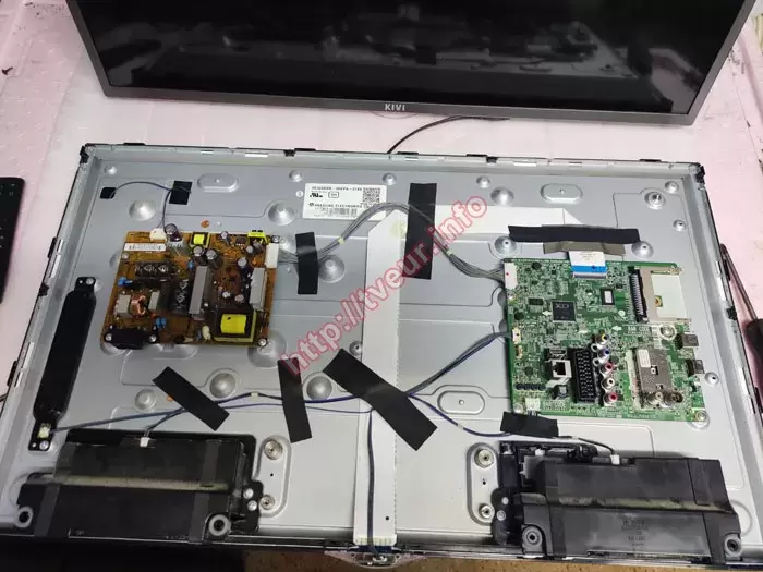 Несмотря на продолжительный срок службы, данный телевизор сохраняет привлекательный внешний вид, на корпусе, рамке и экране не наблюдается никаких механических повреждений. В сервисном центре, после включения телевизора, было установлено, что через час работы подсветка начинает мигать, что приводит к его отключению. Прежде чем оказывать услуги по ремонту телевизоров необходимо с максимальной точностью определить причину возникновения неисправности. Для реализации данных целей неизменно выполняется диагностика. Телевизор разобрали и узнали, какие модули в нем используются. Это - плата Main Board NC4_L_TU245, тюнер EBL61240503, TDSQ-G601D(B), плата питания E247691, матрица HC320DXN-VHFPA-21XX, а также шлейф матрицы EAD62502205. Как выяснилось, из строя вышли плата Main Board и модуль питания.