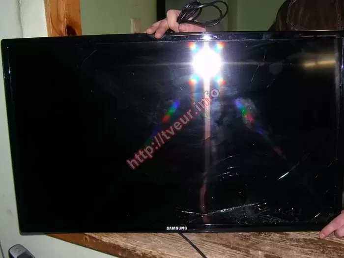 Неаккуратная, не правильная эксплуатация современного ТВ, приводит к тому, что требуется замена матрицы телевизора, которая, как показывает практика, обойдется заказчику не дешево. В данном случае сильно разбит экран в 32-дюймовом LED телевизоре Samsung UE32EH4000W. Эта модель с разрешением 1366x768 точек, контрастностью 3000000:1 и углом обзора 178°/178°. В телевизоре используются такие технологии, как Samsung Clear Motion Rate (плавность движения), Wide Color Enhancer Plus, отвечающая за алгоритм обработки цвета и другие. Осмотрев телевизор стало понятно, что в экран бросили какой-то тяжелый предмет (предположительно детская железная игрушка). В результате этого возможна только лишь замена матрицы телевизора. Экран полностью черного цвета. В месте, где был удар (возле нижней рамки в правом углу) образовалась паутина из мелких трещин, которые расползлись по всей матрице. Чтобы правильно и качественно была выполнена замена любой модели матрицы телевизора (город Киев), необходимо наличие специального оборудования, которым располагает наша мастерская. Такой ремонт не возможно выполнить самостоятельно, поскольку это достаточно трудоемкий процесс, ведь телевизор придется полностью разбирать, и после замены, опять собирать. Кроме того, одно неверное движение, и новая дорогостоящая матрица придет в негодность. Именно поэтому, пользователь обратился к нам за помощью. Была заказана и выполнена последующая замена матрицы телевизора со всеми последующими настройками.