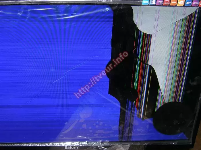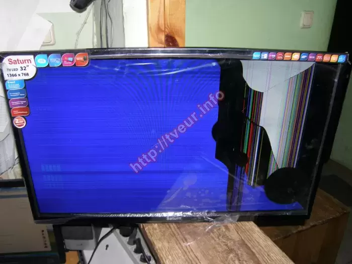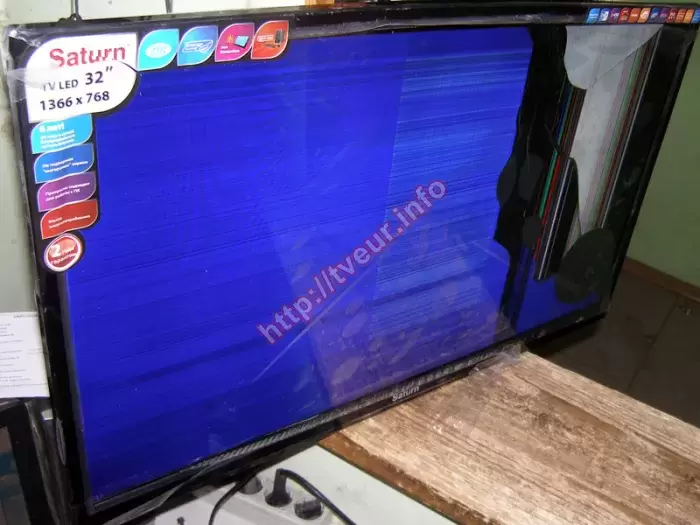 Такая услуга, как качественная замена матрицы телевизора, выполнить которую можно в нашем сервисном стационарном центре, является достаточно трудоемкой и дорогостоящей. Как правило к ее замене приводит неаккуратное, неправильное использование современного телевизора. В данном случае разбит экран в 32-дюймовом LED телевизоре Saturn LED32HD500U. Пользователь, который доставил его в нашу мастерскую, объяснил телемастеру, что это случилось по вине детей, которые во время игры, нечаянно ударили тяжелой игрушкой (предположительно железной машинкой) по матрице. Данная модель с разрешением экрана 1366x768 точек, яркостью 450 кд/м² и динамической контрастностью 40000:1. Этот телевизор, произведенный в Китае, наделен одним ТВ-тюнером (аналоговым). В результате удара по матрице, в нижнем правом углу образовался круг черного цвета, во все стороны от которого пошли трещины. Чуть выше от него - еще одно такое же круглое пятно, только меньшего размера. Правая сторона экрана черная, на ней два светлых пятна, а также многочисленные вертикальные полосы разных цветов. На остальной части экрана разводы и полосы. Когда в телевизоре разбита матрица, появились сколы, трещины, ремонт возможен, и он будет состоять только лишь в замене нового экрана, который придется заказывать. Со всеми условиями пользователь согласился, поэтому нами была заказана и впоследствии заменена новая матрица. Кроме того, выполнены настройки телевизора. Чтобы избежать такой сложный и дорогостоящий ремонт в дальнейшем, заказчик ознакомлен с тем, как правильно эксплуатировать телевизор.