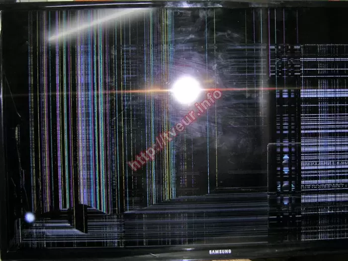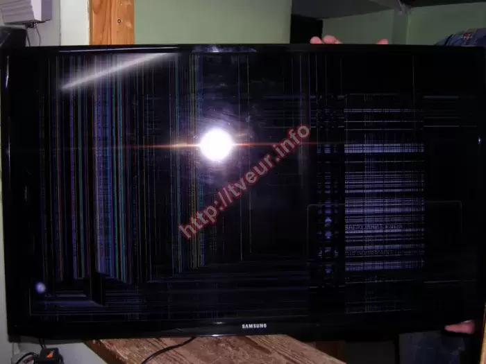 Мастерам нашего сервисного центре приходится часто сталкиваться с ситуацией, когда требуется замена матрицы телевизора, которая как правило по неосторожности разбита. Данный случай не исключение, поскольку именно по причине сильного удара в Smart TV телевизоре Samsung UE40EH5307K с LED подсветкой разбит большой 40-дюймовый экран. Данная модель с разрешением 1920x1080 точек, частотой развертки панели 100 Гц, а также двумя ТВ-тюнерами (аналоговым и цифровым). Этот телевизор поддерживает самые востребованные форматы, включая MP3, WMA, WMV, MPEG4, MKV, AVI, JPEG, DivX. Он наделен широким спектром современных разъемов, включая 3 x HDMI, 2 x USB и другие. Осмотрев устройство стало понятно, что удар был в левый нижний угол, от которого вдоль через весь экран появились трещины. Вниз от основной трещины горизонтальные цветные полосы. От трещины вверх - много вертикальных цветных полос. В правой части матрицы полоса из сетки, состоящей из светлых горизонтальных и вертикальных полос. Все вышеописанные симптомы говорят о том, что ремонт может состоять только лишь в замене новой матрицы, о чем был поставлен в известность пользователь. Со всеми условиями он согласился, поэтому нами была заменена новая матрица, которую пришлось заказывать. После всех выполненных работ, включая настройку, этот телевизор полностью в рабочем состоянии. На все работы и новый экран выдана гарантия.