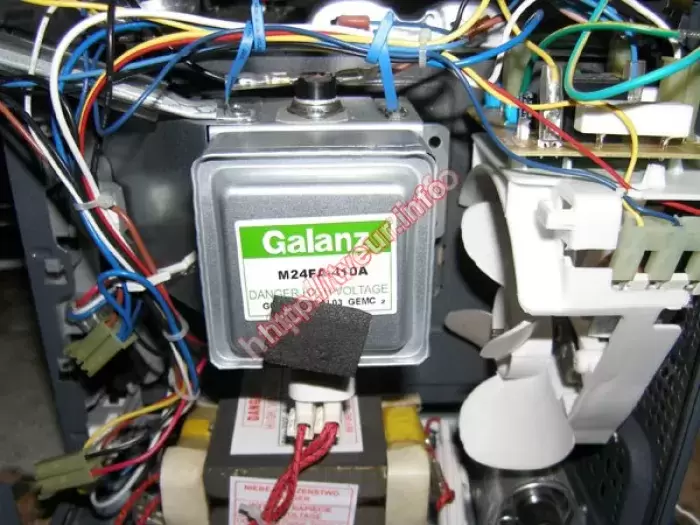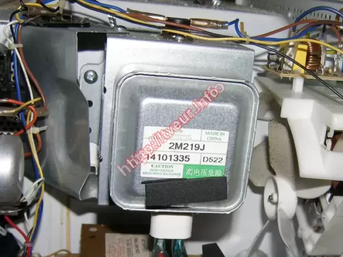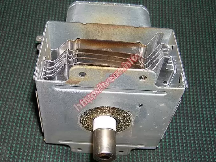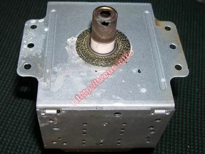 Из-за длительного времени работы сокращается мощность энергии магнетрона. Это сложная деталь микроволновки, которая состоит из большого количества компонентов. Если магнетрон пробит или потеряна эмиссия, то замена магнетрона неизбежна.