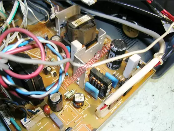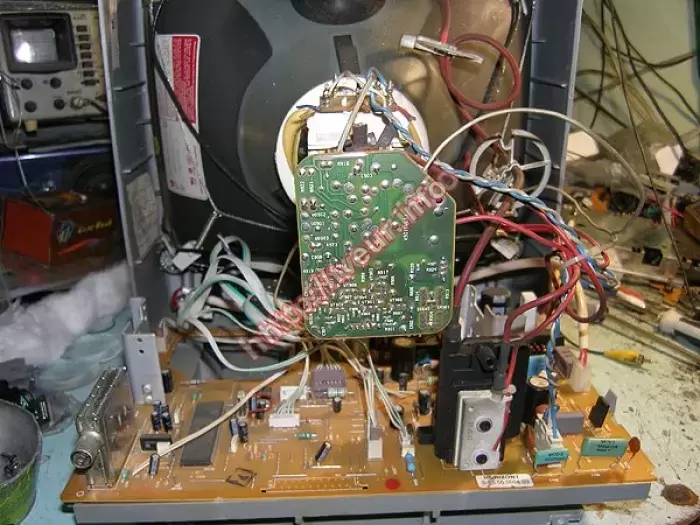 В телевизоре нет изображения и звука, конечно же ремонт телевизоров неизбежен. Ремонт был произведен в блоке питания и состоял в восстановлении монтажа модуля питания, профилактике, а также замене пассивных элементов и микросхемы KIA7805.
