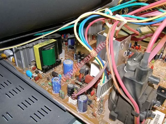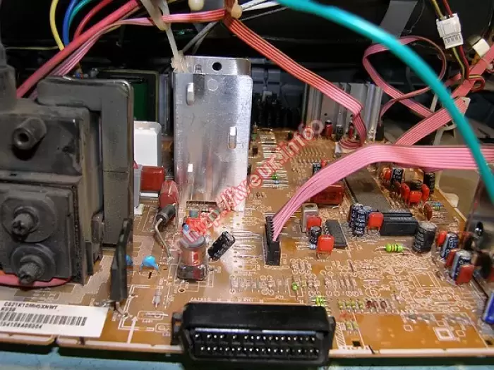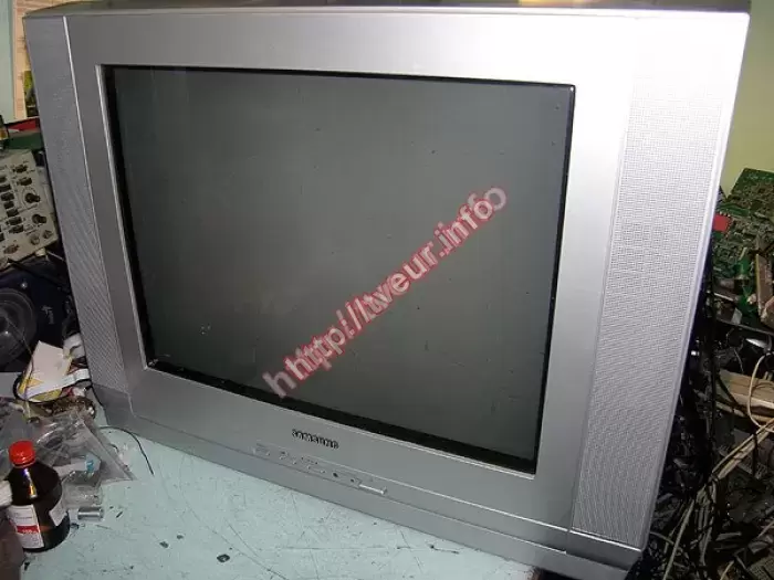 Кинескопный телевизор не работает, после включения пропадает звук в одном из каналов. Проблема была в модуле строчной развертке и ремонт телевизоров состоял в замене конденсаторов С 680 пФ*2 кВ, а также был поменян правый динамик.