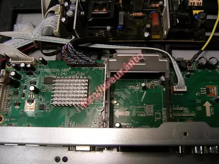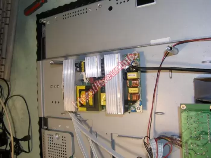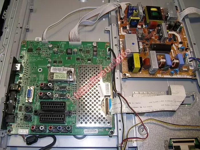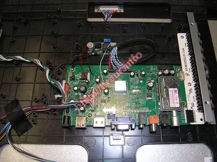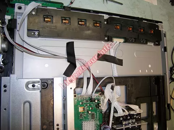 Появление на экране ЖК телевизора вертикальной или горизонтальной полосы, говорит о неисправности шлейфа матрицы. Причина может скрываться в плохом контакте шлейфа панели с платой. В данном случае ремонт ЖК телевизоров неизбежен.
