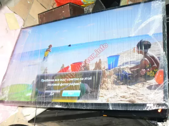55-дюймовый 3D LED телевизор Samsung UE55ES6307U, который собран в 2012 году, поступил в сервисную мастерскую с достаточно серьезной проблемой. У него полоски по изображению в нижней части экрана, кроме того, нарушена цветопередача в левой части матрицы LTJ550HW08-L. Такие симптомы говорят о том, что гарантированно потребуется ремонт 3D экрана, который будет не только сложным, но и дорогостоящим. Как показывает практика, причинами подобных неисправностей является неосторожное обращение со стороны пользователей с хрупкими и тонкими современными телевизорами. Это могут быть самые разные механические воздействия - удары, толчки, попадание жидкости и многое другое. В результате на экране появляются полосы, причем как вертикальные, так и горизонтальные, а также разные другие артефакты. Данный случай не исключение. Чтобы выполнить ремонт 3D экрана, телевизор пришлось разобрать и выполнить предварительную диагностику. С ее помощью смогли определить вышедшие из строя компоненты матрицы. После их замены, полосы пропали, цветопередача стабильная. Это был сложный ремонт, выполняющийся на специальном оборудовании. А поскольку пришлось менять много составляющих 3Д экрана, он еще и дорогостоящий.