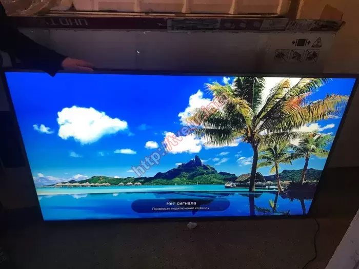 Из города Обухов Киевской области в нашу мастерскую поступил телевизор LG 65UH6507, упакованный в родную коробку. По информации от заказчика, экран устройства полностью серый, изображение не отображается. В ходе телефонного общения он отметил, что после того, как произошла неисправность, сразу же отвез неисправный телевизор в ближайший сервисный центр. Специалисты провели диагностику и осуществили замену основной платы и платы T-con, однако такие действия не привели к необходимому результату. При включении телевизора в сервис центре экран показал серый цвет. Исходя из этого, можно предположить, что быстрее всего потребуется ремонт матрицы телевизора LG, но при этом сказать, какой сложности он будет, можно будет только после разборки телевизора и проведенной диагностики.