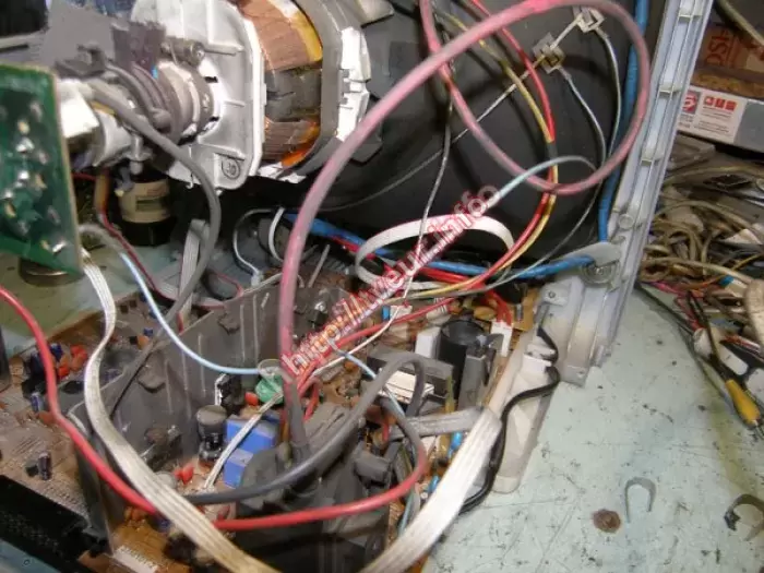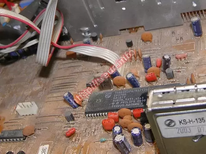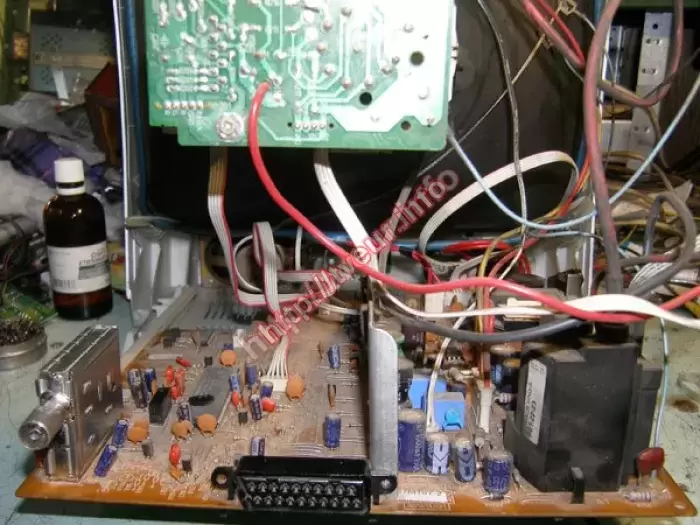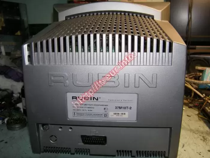 В кинескопном телевизоре с 37 см экраном - Rubin 37M10T-2 выломано гнездо антенны, требуется ремонт телевизоров в сервисном центре. В ходе диагностических работ выяснили, что его уже пытались ремонтировать, а именно припаивать вышедшую из строя деталь, но ничего не получилось. Кроме того, не работает тюнер, смяты катушки, порваны дорожки. Поскольку проблема в модуле тюнера, была выполнена реставрация катушек тюнера, восстановление монтажа, замена антенного гнезда, другие профилактические работы. После такого сложного ремонта, телевизор работает отлично.
