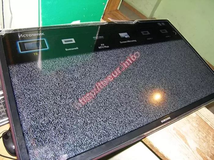 Часто бывает, что экран ТВ не разбит, не поцарапан, да и относились к нему хорошо, но качественному просмотру мешают светящиеся точки. Это битые пиксели, быстрее всего брак и здесь ничего кроме, как замена матрицы телевизора не поможет.