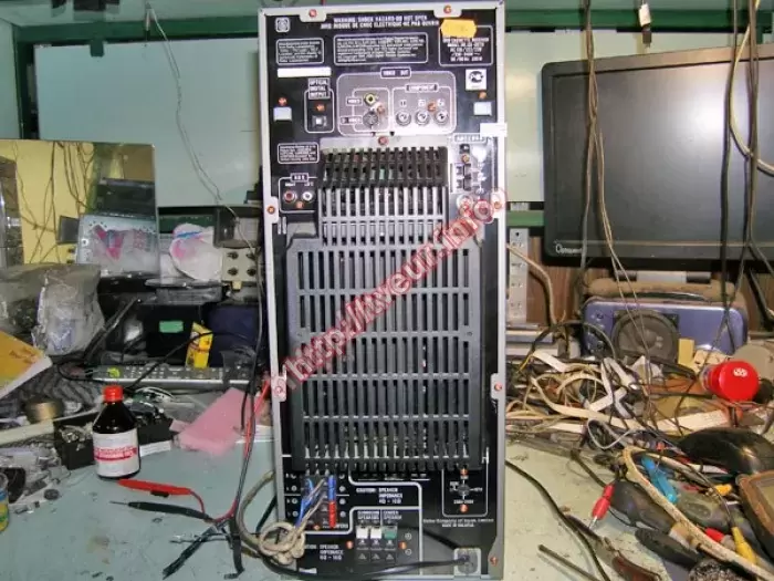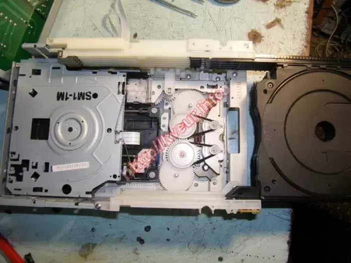 В связи с тем, что неправильно вставили диск в CD-чейнджер, его заклинило. Ремонт музыкальных центров заключался в юстировке механизма чейнджера, замене пассиков. Требует аккуратного обращения, хлипковатая конструкция механизма.